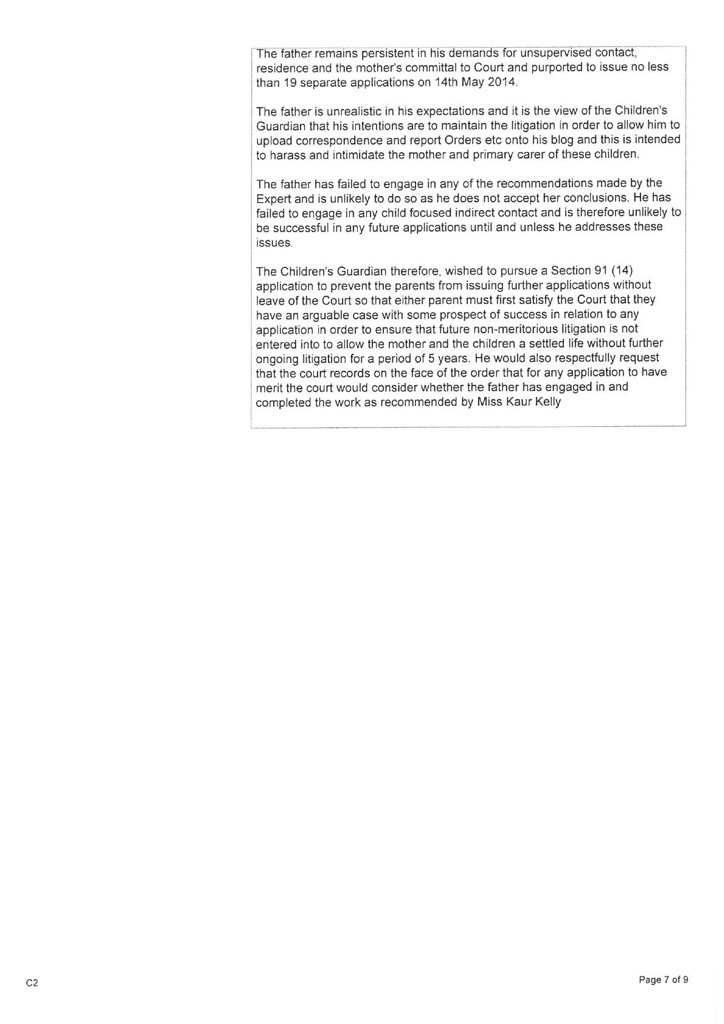 I am really pleased with Peter Morey from Cafcass Blackburn’s statement as he has played right into my hand and did what I wanted him to do …
