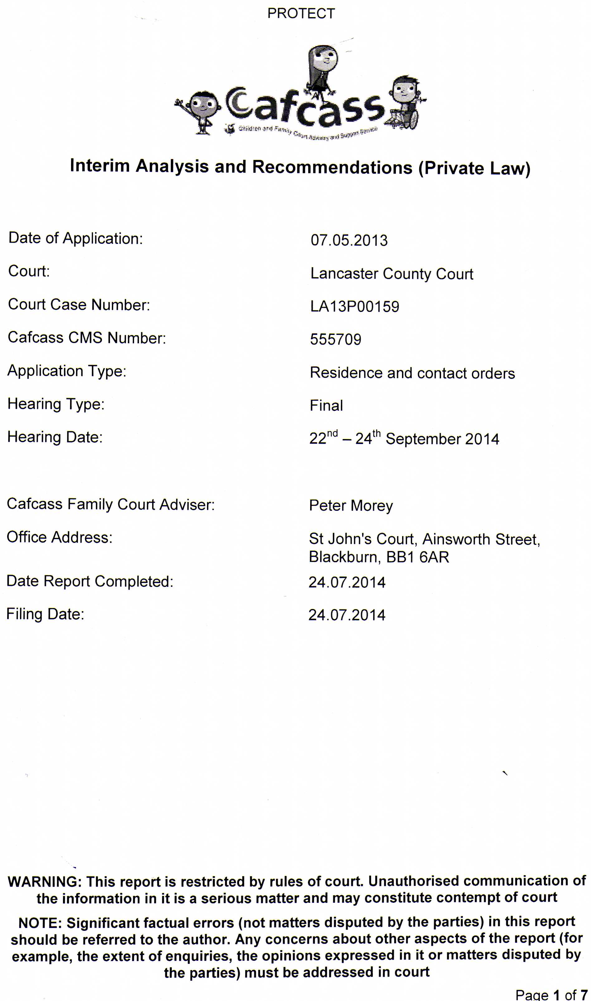 Peter Morey from CAFCASS Blackburn’s statement Champs :-)