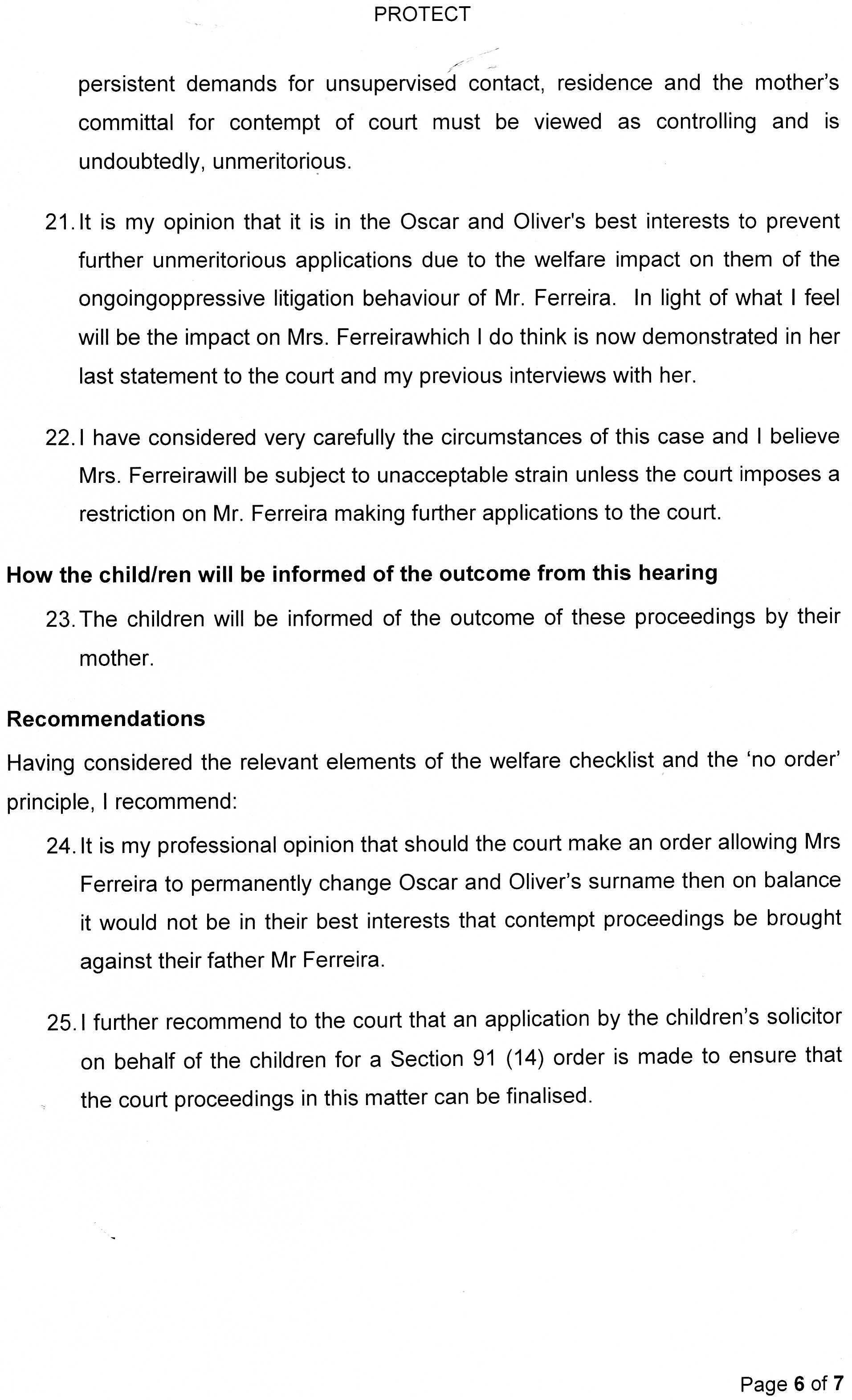 We should also get the contempt of Court documents from Cafcass’s Mr Peter Morey as tomorrow is his deadline to file ..should make for some amusing reading I am sure , I will keep you both posted and will blog the stuff if I get it 🙂