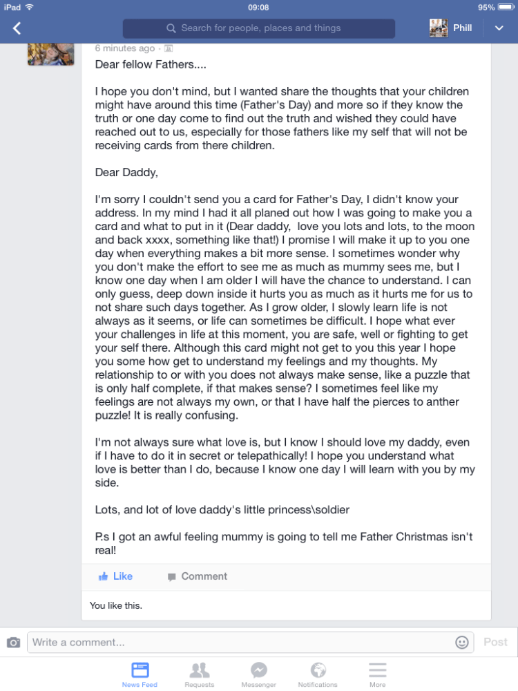 “Fathers day is an emotional time for fathers denied access to their children.”
