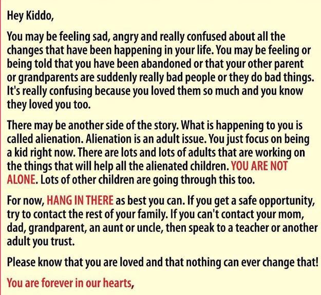 They made you take classes to grieve and forget the loss of your real mommy, but I am still alive. Below, a journal of life while you were kidnapped. May you find this NOW. I love you, julian-jacob worrell, of family saloom!