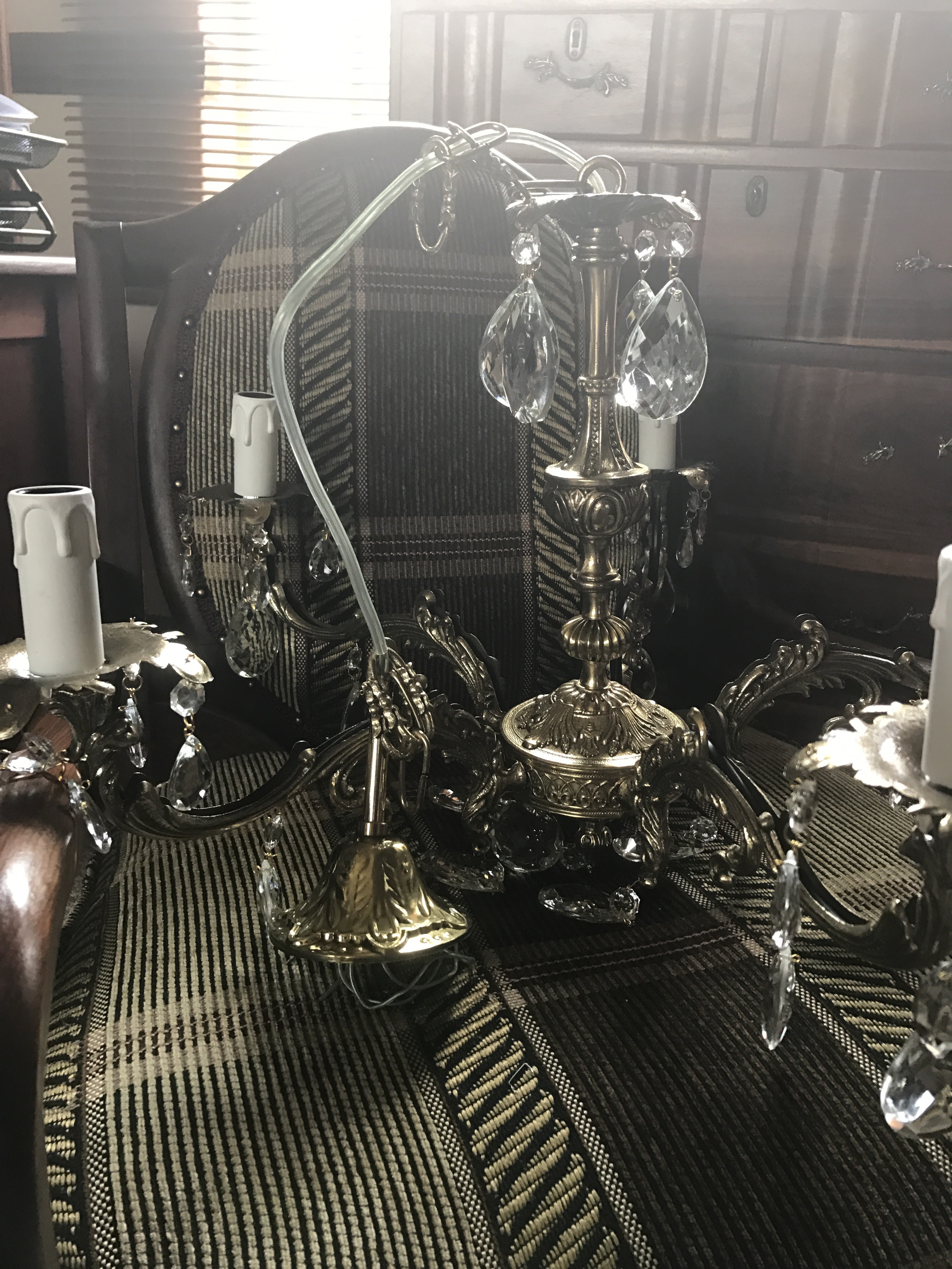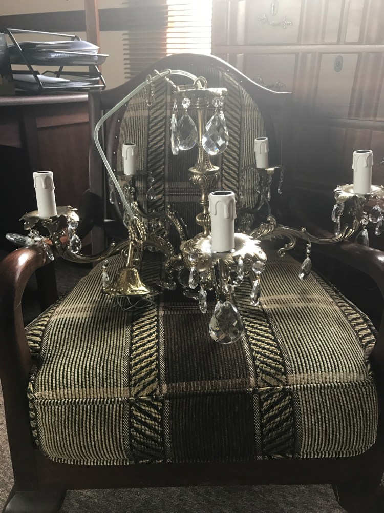 One thought on “Crystal chandelier for my office back from restoration xoxo